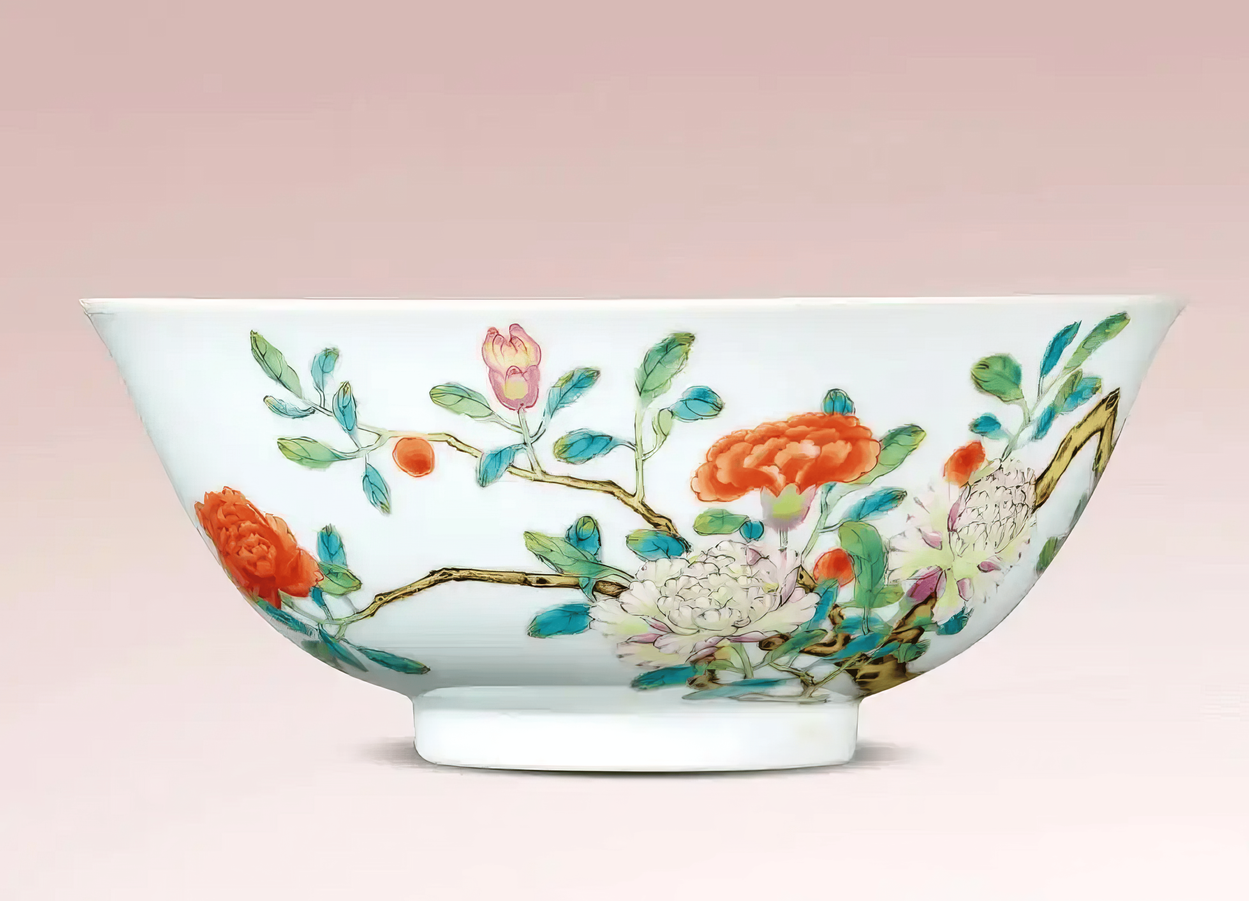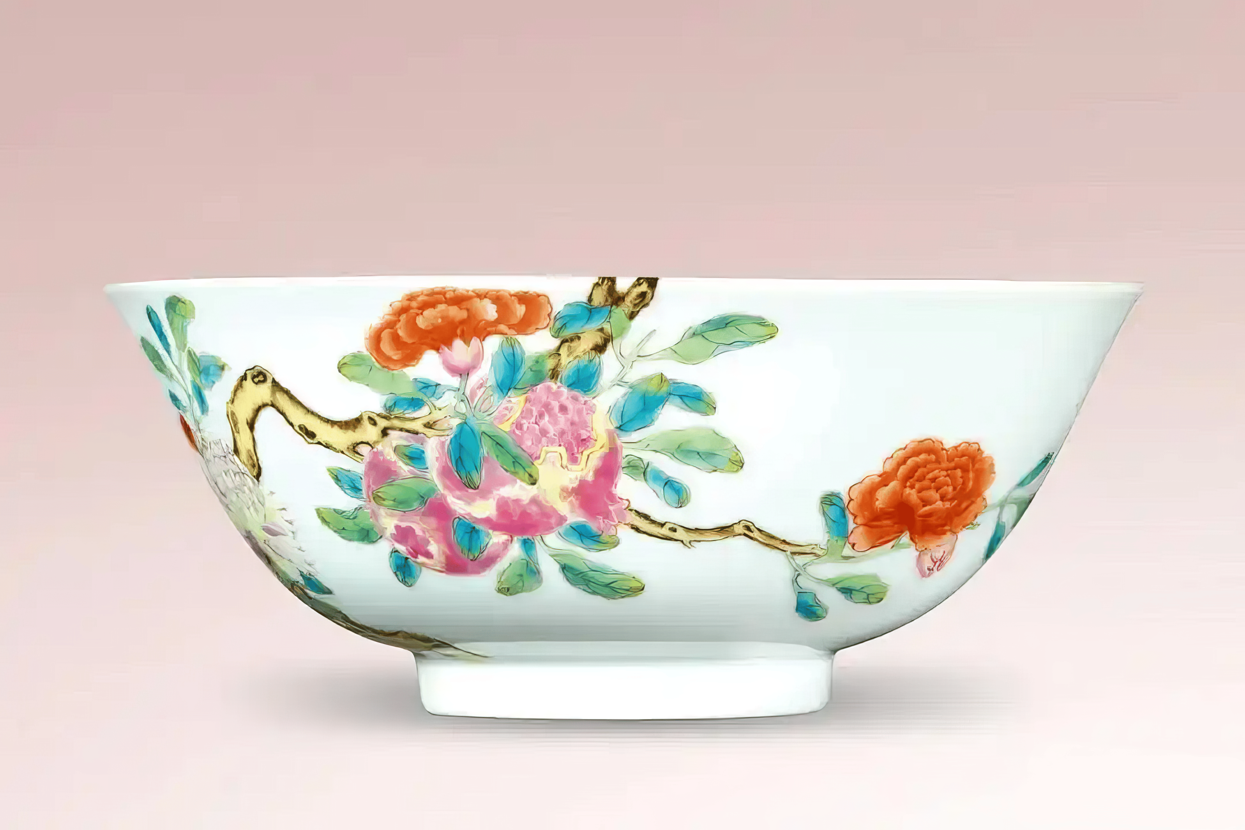 清乾隆 粉彩过枝石榴牡丹纹碗
