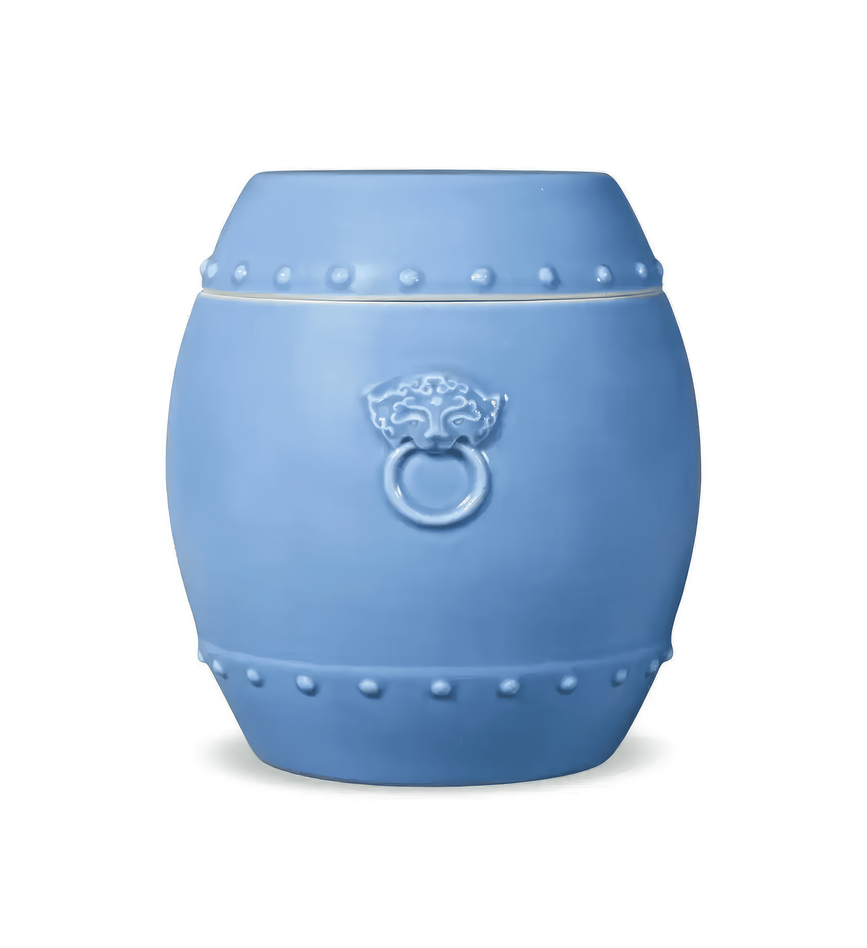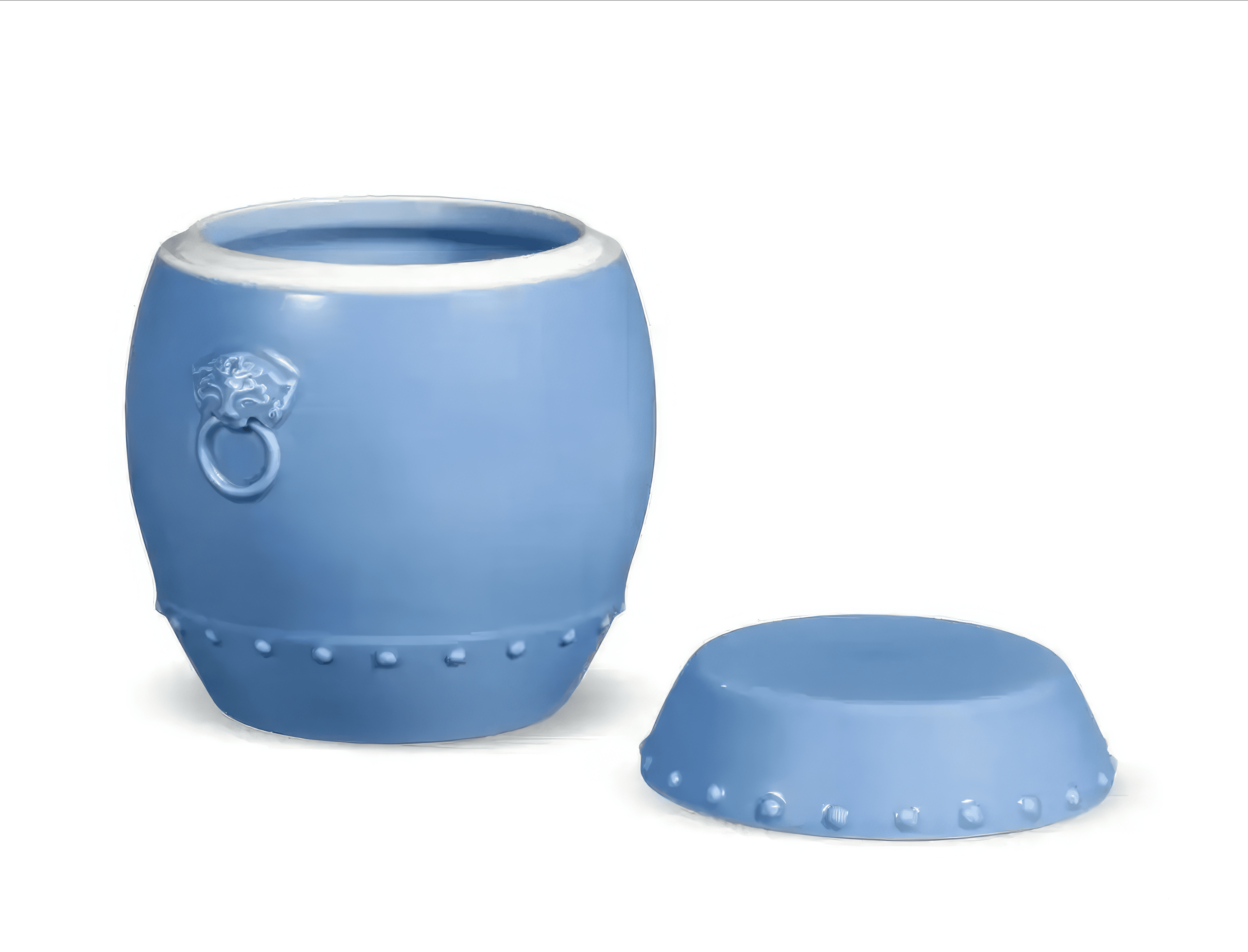 清雍正 天蓝釉贴铺首乳钉鼓式盖罐