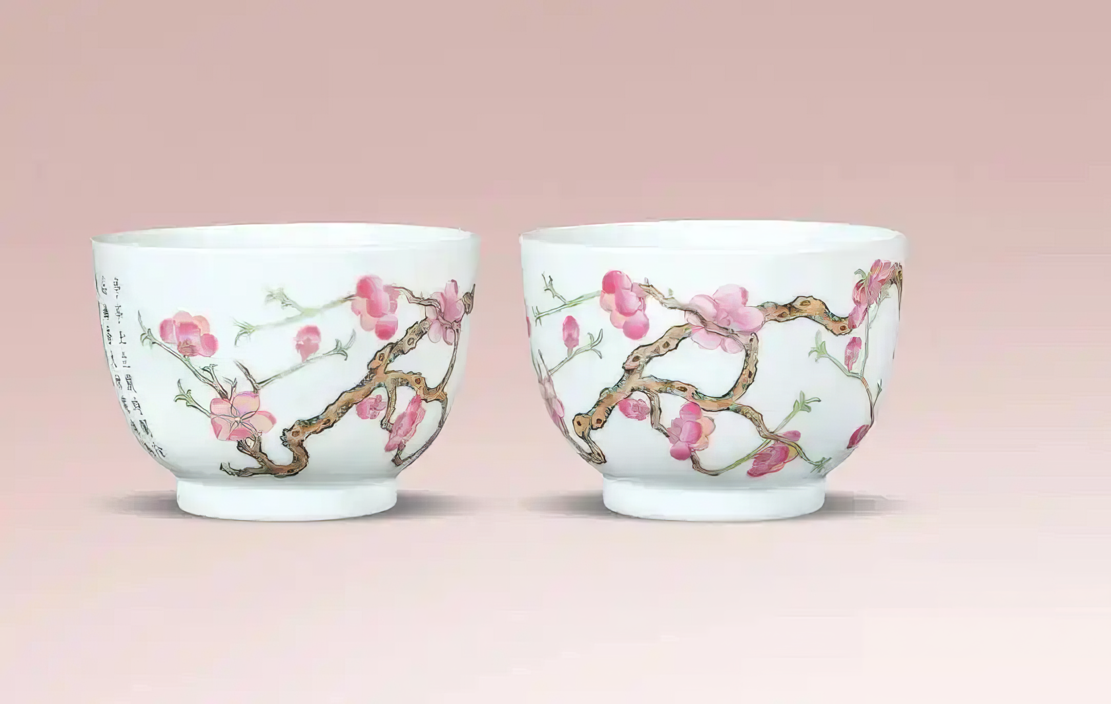 粉彩诗文梅花纹杯一对