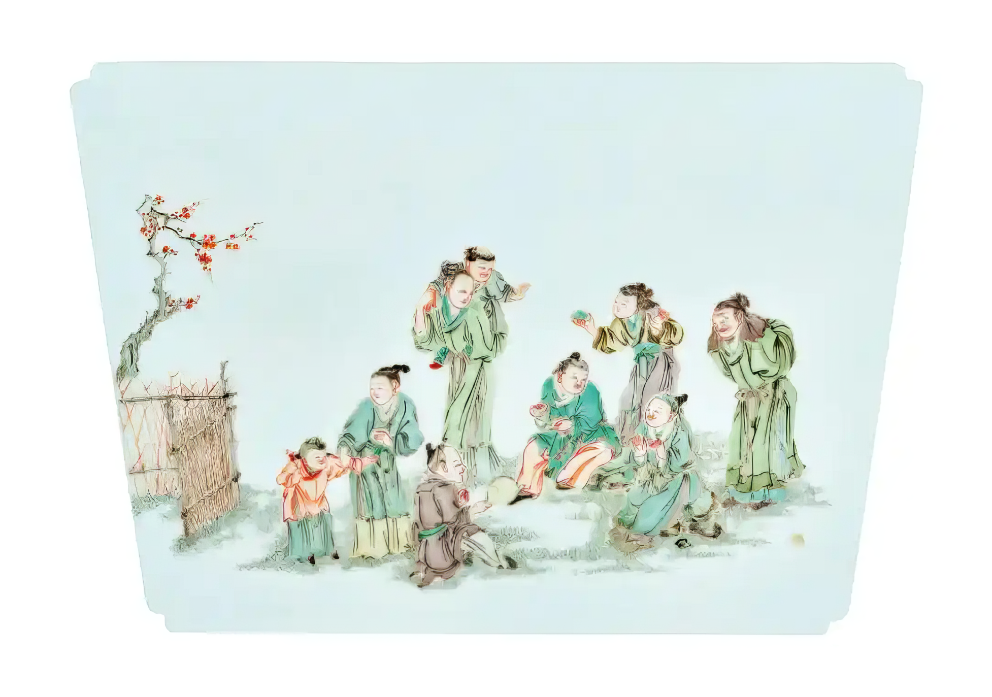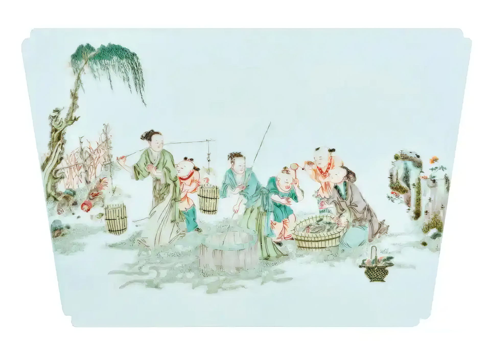 清雍正 五彩农家乐图花盆