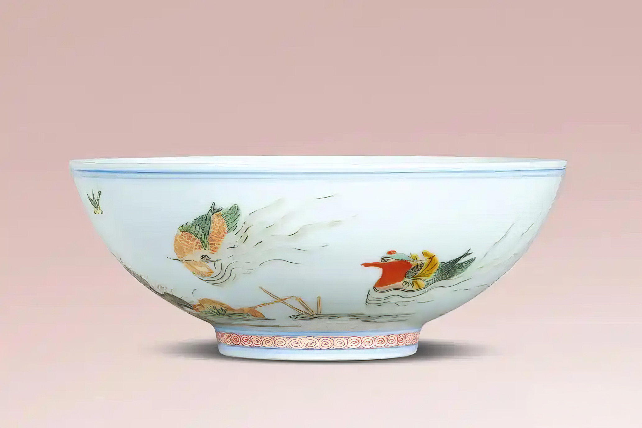 清康熙 五彩「荷塘鸳鸯」碗