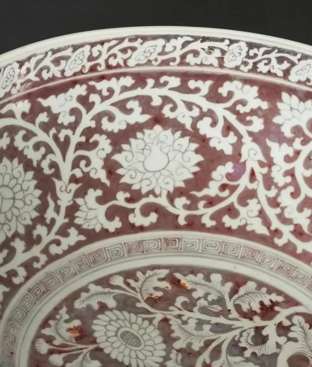 所谓「釉里红拔白」,是指内外均以釉里红为地作留白装饰,与白釉为地的常见釉里红器刚好相反,被北京故宫形容为「颇为少见」的装饰技法。