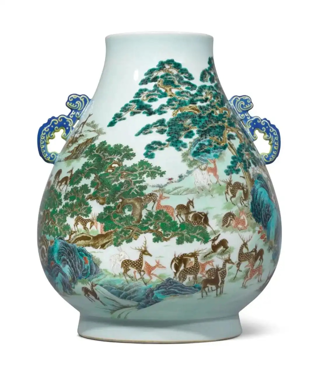 清乾隆 磁胎洋彩蓝耳百鹿尊
