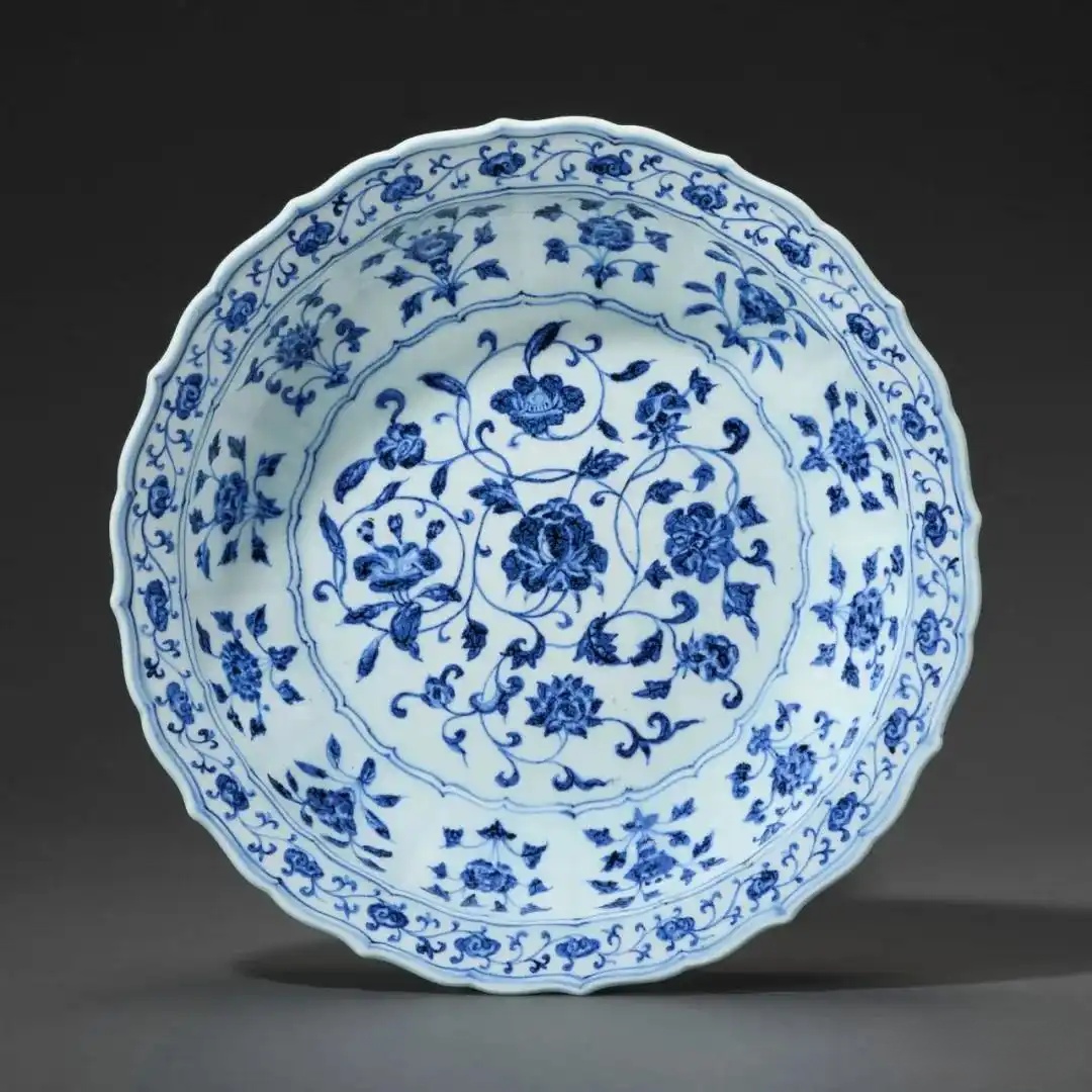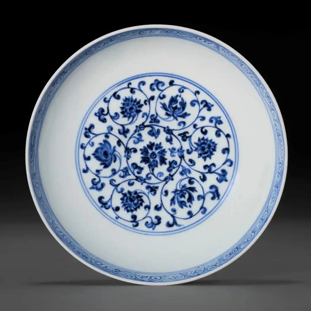 明宣德 青花缠枝花卉纹盘