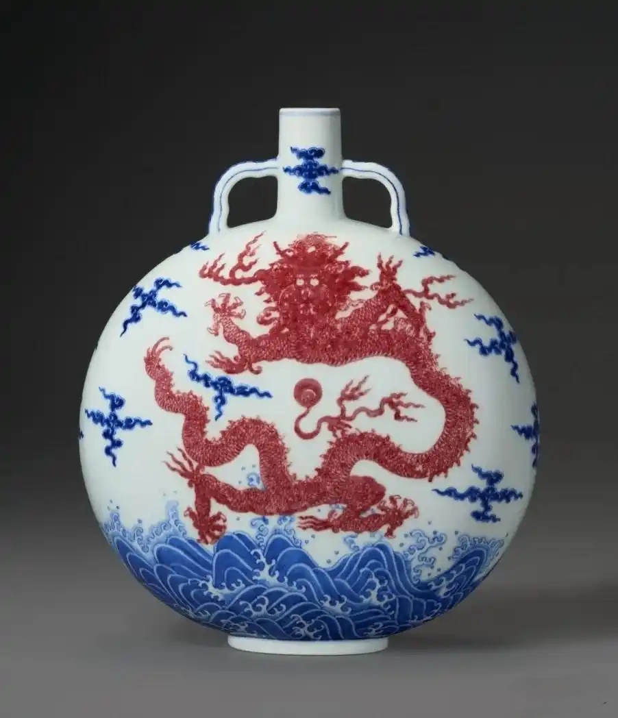 对历代陶工而言,釉里红素来是一个重大挑战。这种釉下彩以铜为呈色剂,而铜不但易于高温挥发,对气氛、含量、冷却速度等因素亦极为敏感。是故,釉里红作为铜红大宗,虽自元朝创烧至清代俱有所出,但数百年间不但屡屡断烧,且即使是御窑都经常烧出呈色灰黑的失败品。