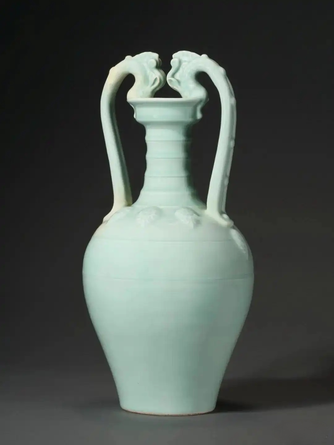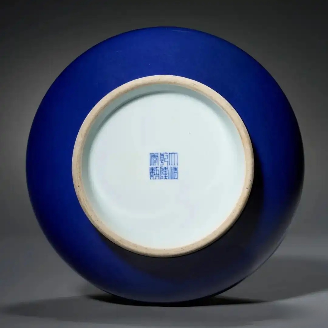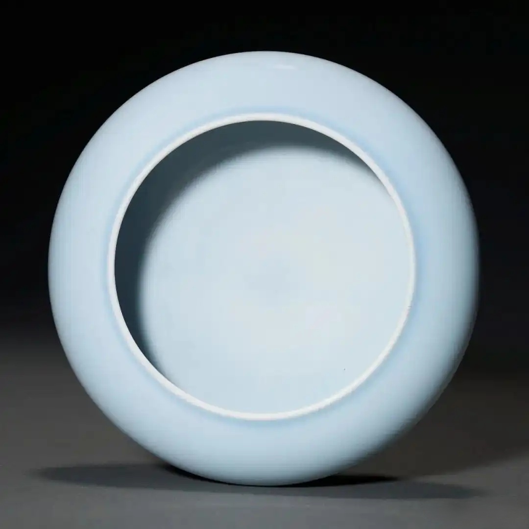 本品高 45.7 cm,圆口溜肩,重心下垂至垂腹处。此种器形在烧制过程中极易变形塌陷,对窑匠功力的考验远超一般尊形。