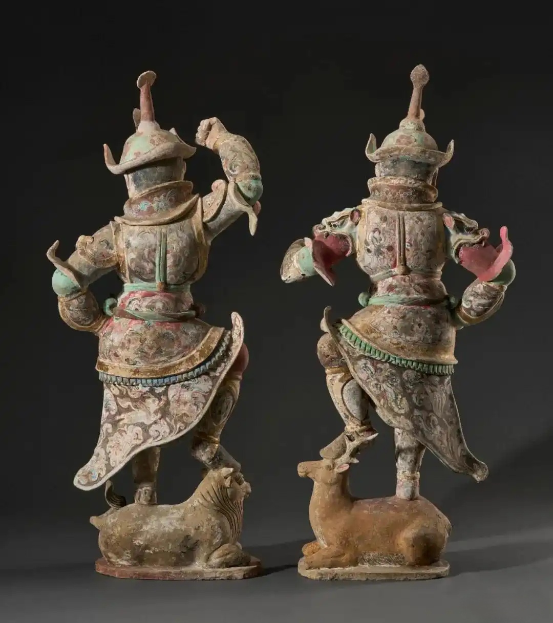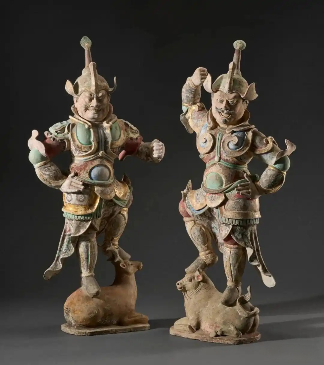 唐 彩绘描金天王像一对