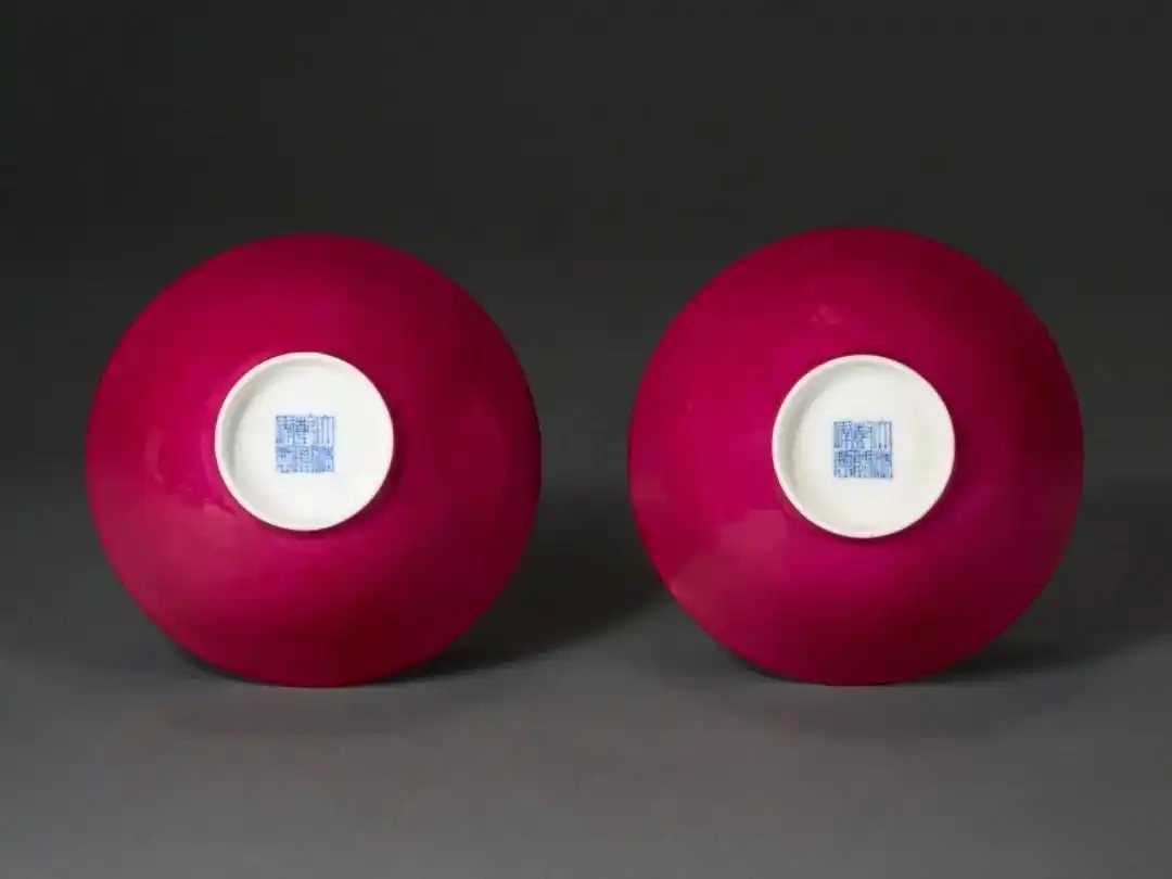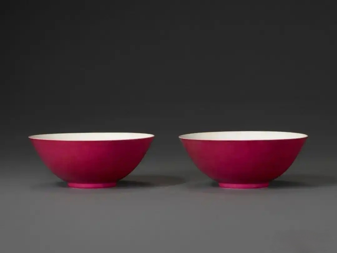 清乾隆 胭脂红地碗一对