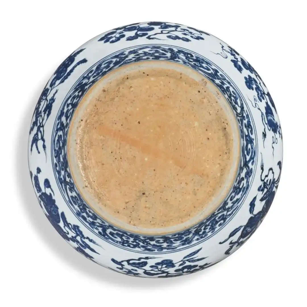 基于「苏麻离青」的这些特点,宣德青花渲染花鸟、海水、园景时,往往产生一种独特的朦胧之美,如同在宣纸作画留下的笔触墨痕,极富风韵。