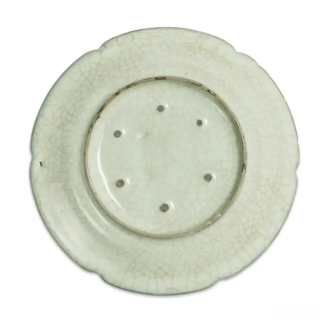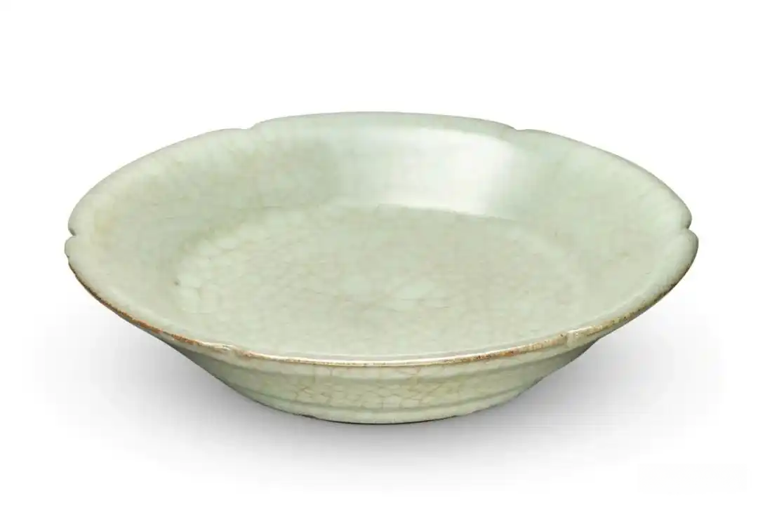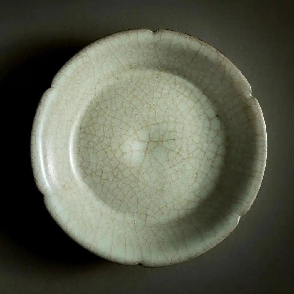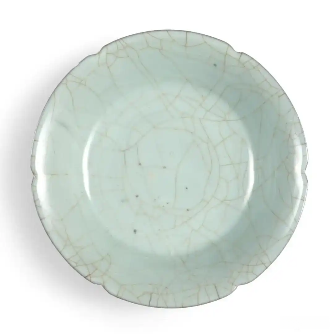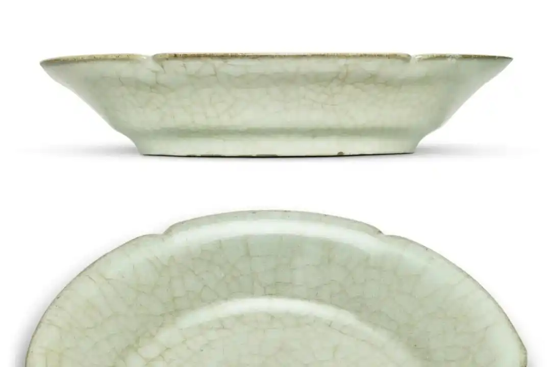 去年香港秋拍,苏富比为「日本鸡蛋大王」伊势彦信举办单一藏家专拍,领衔者亦是一件南宋官窑青釉葵口盘,尺寸(19.2 cm直径)略大于本品,估价HK$2,500万,在三位藏家争持下最后以HK$5,588万售出。