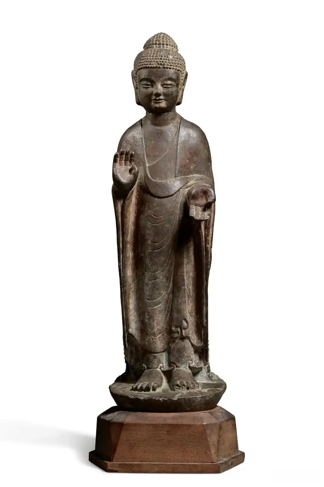 这件明代早期大罐,比例匀称丰腴,器身饰花果纹,青花发色绚丽,颈部书「大明宣德年制」款,约US$100万起拍,获得逾30口叫价之多,最终以US$325万落槌,连佣US$408.5万(RMB 2,820万)易手。由戚星伊(Cindy Qi,中国艺术品部副专家)为电话上的「314」号牌客户投得。