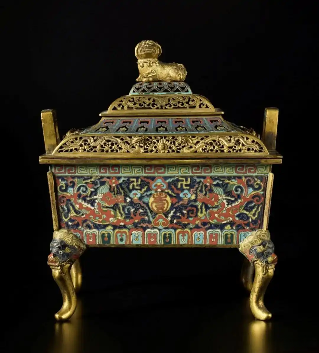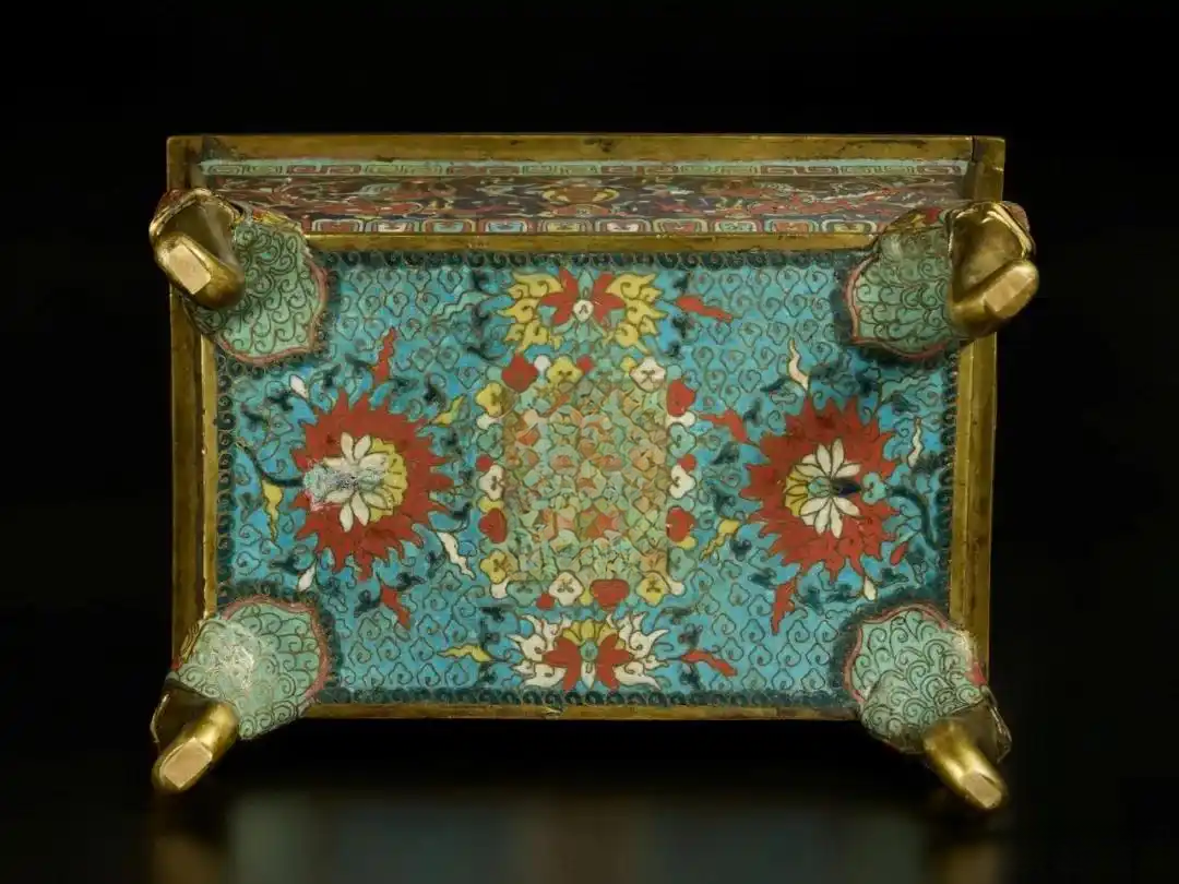 明万历 铜胎掐丝珐琅双龙捧寿纹四足炉