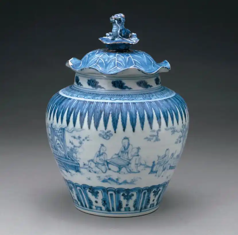 明成化 青花高士图盖罐|耿宝昌以HK$110万在1994年香港佳士得春拍投得,现为北京故宫博物院藏