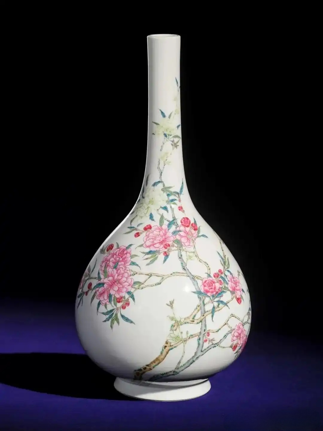 清雍正 粉彩折枝桃花长颈胆瓶 「大清雍正年制」款|估价HK$2,500万 - 5,000万,将于今年9月在苏富比拍卖