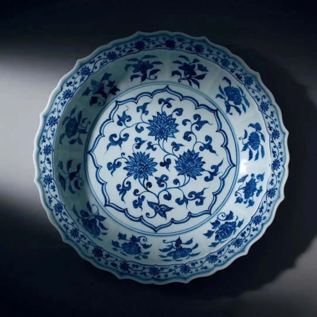 明永乐 青花缠枝花卉纹棱口大盘|2021年,东京中央拍卖,HK$11,536,000成交