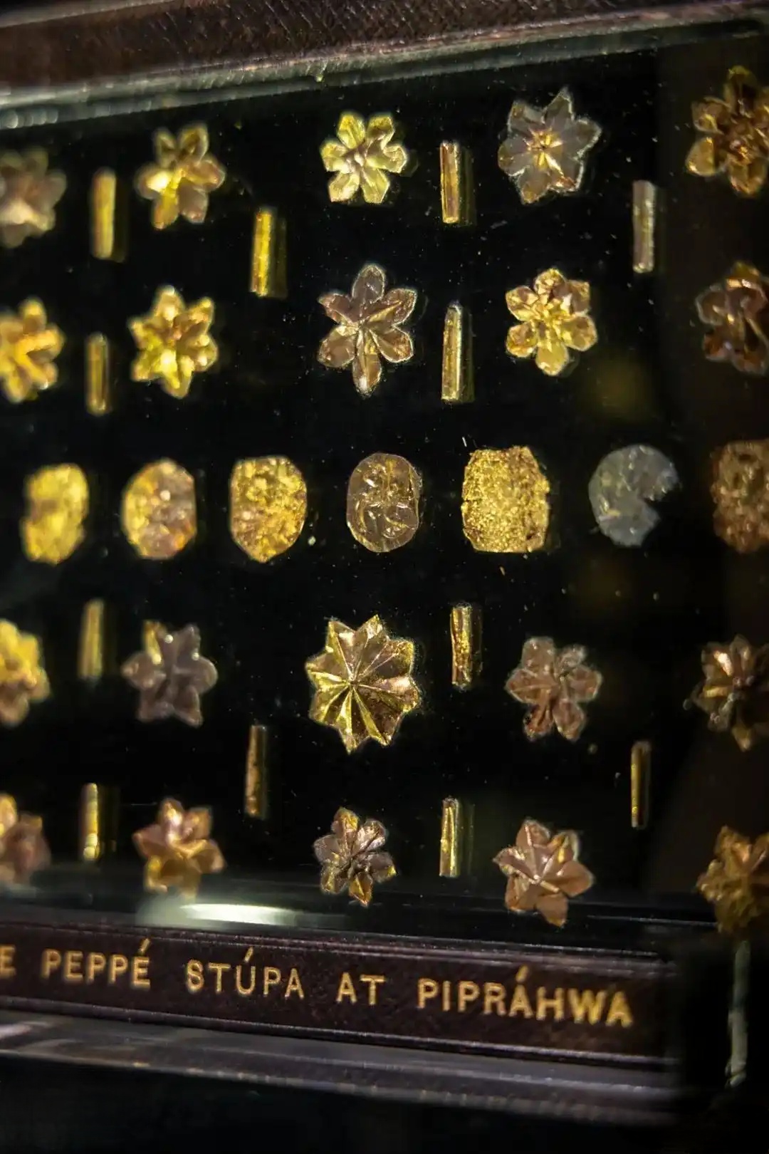 至于和舍利一同埋葬的约1,800颗佛宝圣物,大部分归由加尔各答的印度博物馆典藏,其中「有所重复的」300多颗则交给了佩沛,此后由其家族传承,期间曾于苏黎世雷特伯格博物馆、纽约大都会艺术博物馆(The Met)、新加坡亚洲文明博物馆等地展出,直到如今回归印度为止。
