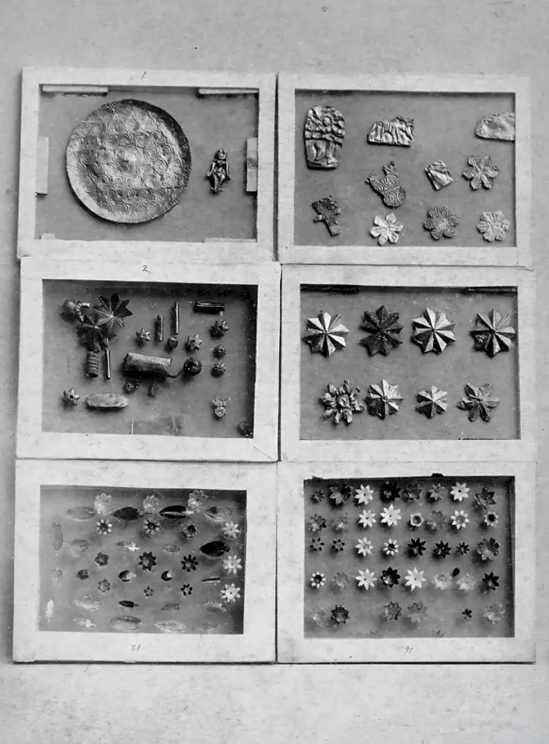 1898年1月,团队掘开了18呎深(约5.5米)的砖块后,发现一个石函,内里有五个坛罐,盛有遗骨舍利以及约1,800颗宝石、半宝石、珍珠、珊瑚、金叶银叶等宝物。