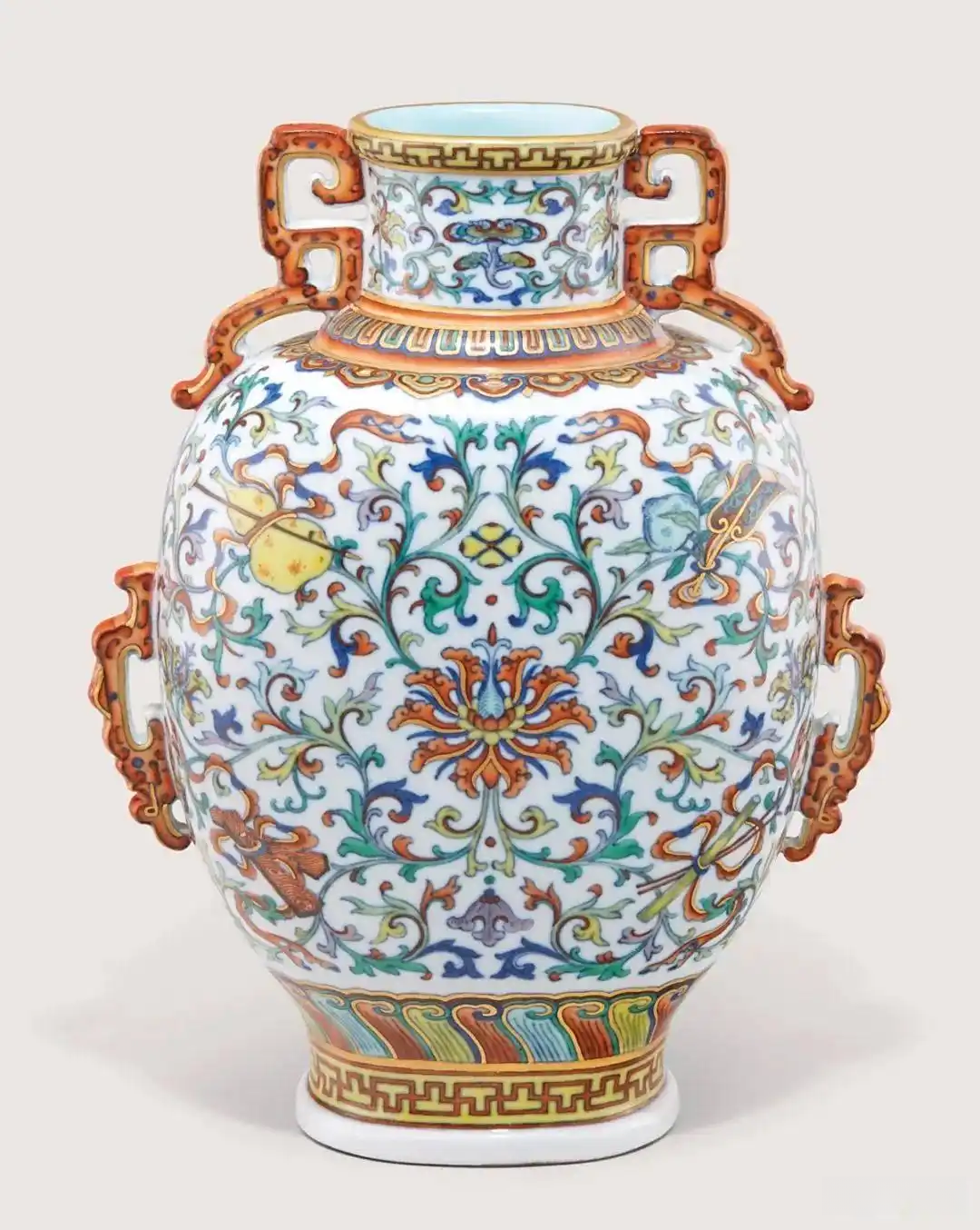 清乾隆 斗彩描金暗八仙缠枝蕃莲绶带纹多耳瓶 六字篆书款|2024年,佳士得「区百龄珍藏:首拍」,HK$1,029万