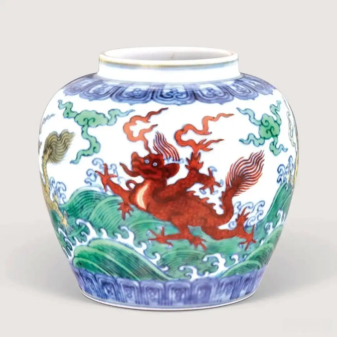 清雍正 斗彩海水异兽纹「天」字罐|2024年,佳士得「区百龄珍藏:首拍」,HK$504万