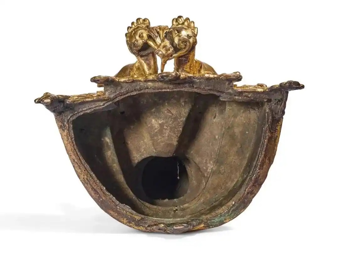 2022年,巴黎佳士得带来一组三尊的金铜造像(下图),分别描绘「横三世佛」- 药师佛、释迦牟尼佛、阿弥陀佛,以远超估价的€190万拍出。无论脸相、衣饰、乃至底座,处理上皆与此尊佛陀相似,尺寸与年代亦相当,可作对比。