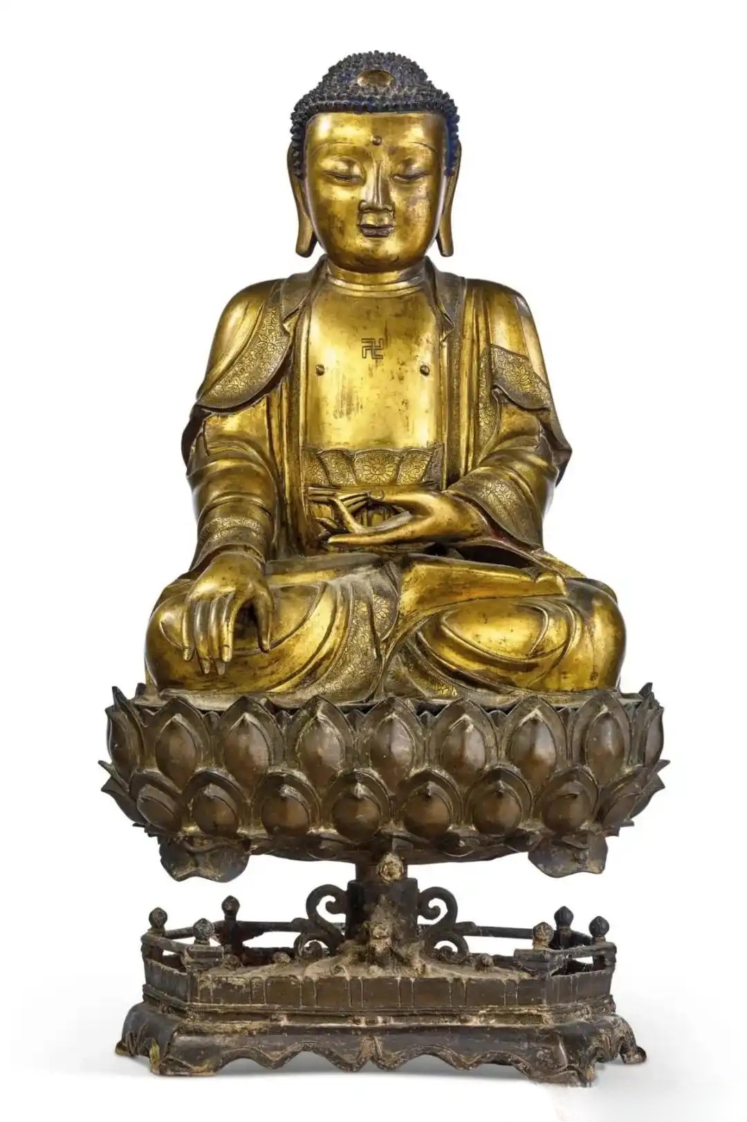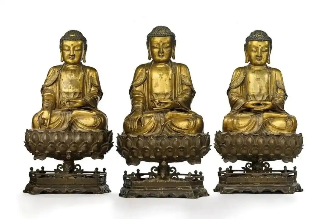 明十六/十七世纪 铜鎏金药师佛、释迦牟尼佛、阿弥陀佛三尊|2022年,巴黎佳士得,€1,902,000成交