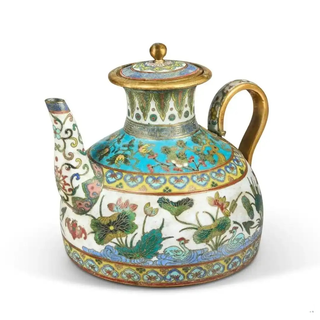 掐丝珐琅莲塘纹盖壶
