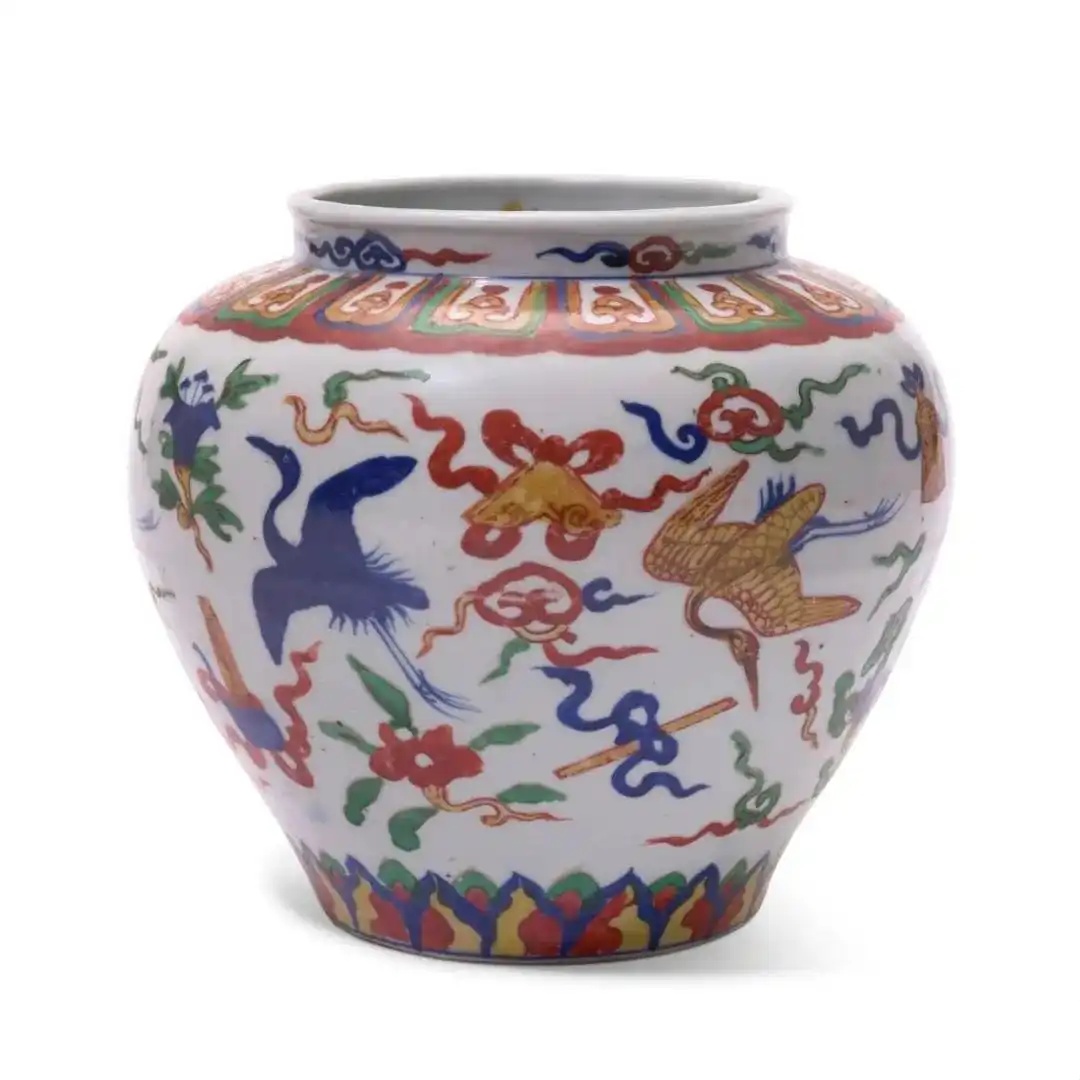 明嘉靖 五彩仙鹤纹罐