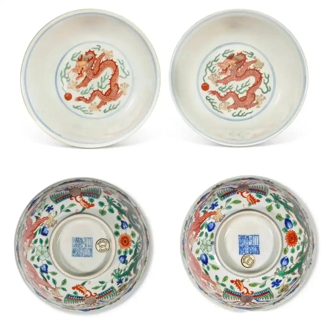 清乾隆 五彩龙凤纹碗 一对
